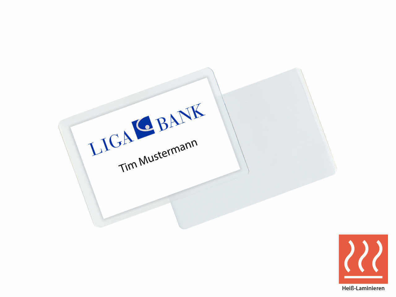 WICHTIG: Für die Laminierung des Namensschildes benötigen Sie ein Heißlaminiergerät. Die Befestigung kann nur lose mitgeliefert werden und wird nach dem Laminieren montiert.