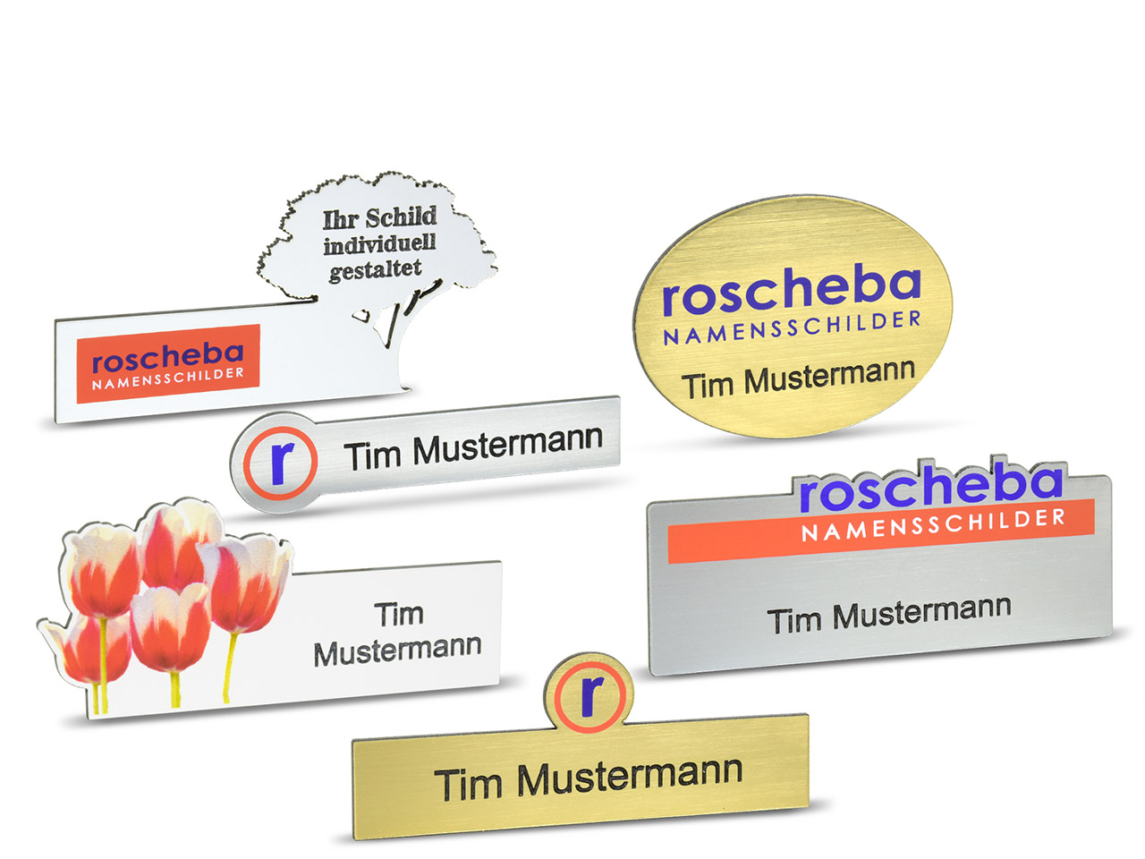 Das roscheba® Namensschild N20-1 ist eine Besonderheit in unserem Sortiment, da die Größe und die Form individuell anpassbar ist - rechteckig, oval oder rund, Sie haben die Wahl. Entscheiden Sie sich für eine der drei klassischen Farben Silber, Weiß oder Gold für die schmuckvolle Trägerplatte und lassen Sie diese mit einer Lasergravur Ihres Namens und einem Logodruck ( Mindestabnahme 10 Stück mit gleichem Logo)  Ihres Unternehmens versehen. Damit ist Ihnen ein repräsentativer und professioneller Auftritt garantiert.