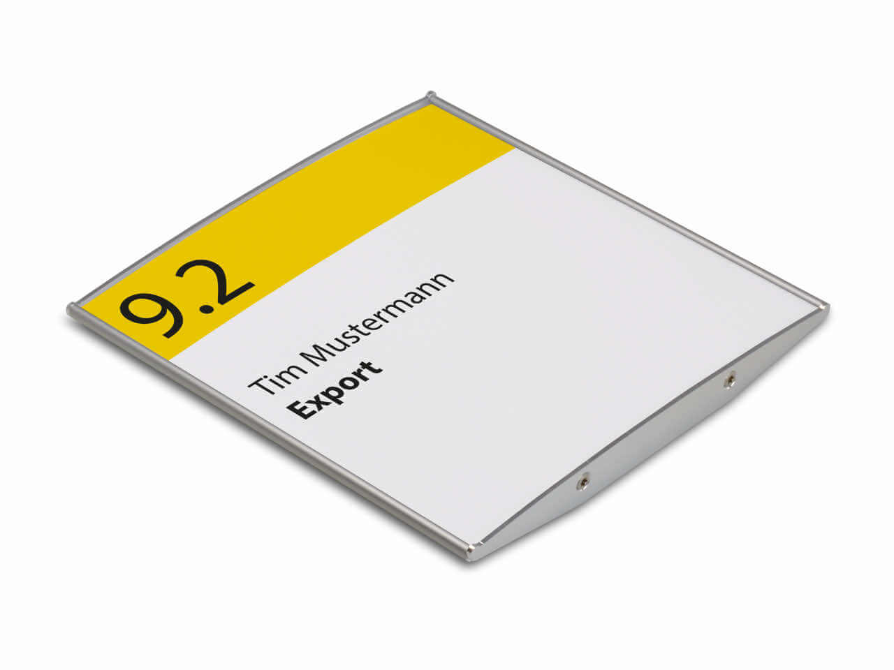 Das Türschild TS-2030 besteht aus hochwertigem Aluminium und ist mit einem Sichtfenster aus antireflektierendem Acrylglas ausgestattet, durch welches die Papiereinlage mit Ihrer Beschriftung jederzeit optimal lesbar ist. Diese lässt sich zudem mit dem mitgeliefertem Saugnapf schnell und leicht wechseln. Das Türschild können Sie mit den dazugehörigen Schrauben und Dübeln an Ihrer gewünschten Position befestigen und es passt sich durch seine dezente, horizontale Wölbung harmonisch daran an. Dies, die hochwertige Beschaffenheit des Materials und deren Robustheit gewährleisten Ihnen einen sicheren Halt und vermitteln einen professionellen Eindruck.